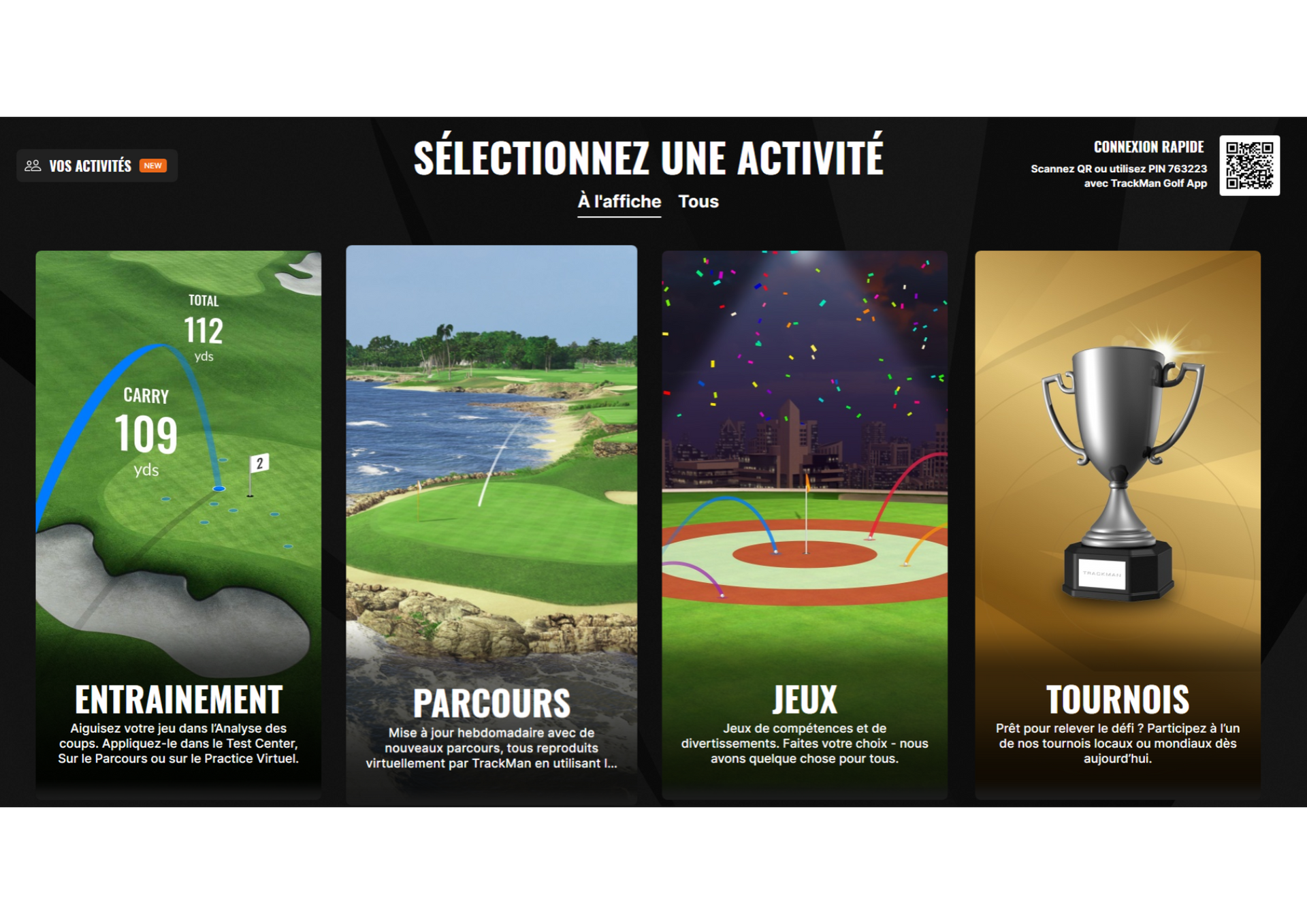 Venez jouer par tous les temps sur notre simulateur moderne de golf Trackman 4 . Nous sommes ouverts toute la semaine pour vous permettre de pratiquer votre sport favori.
